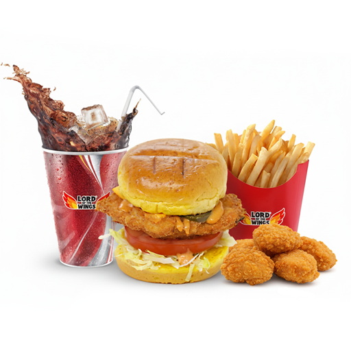 Golden brown perfection crispy chicken with buffalo rice special bowl and softdrinks